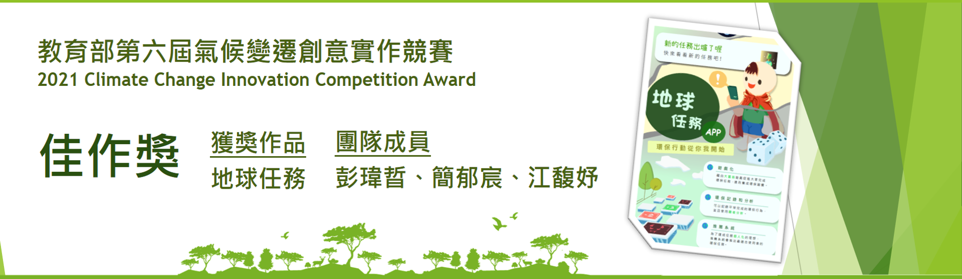 本系彭瑋晢、簡郁宸與江馥妤同學參與教育部氣候變遷創意實作競賽榮獲佳作。