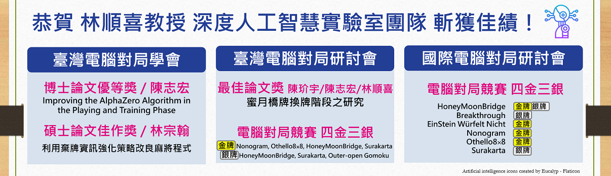 本系林順喜老師率領深度人工智慧實驗室團隊於電腦對局競賽榮獲佳績!