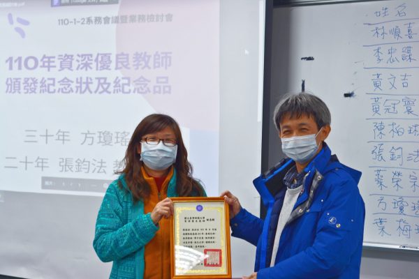 本系方瓊瑤主任與張鈞法教授榮獲110年資深優良教師