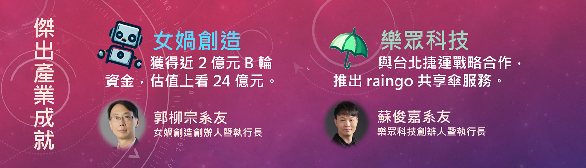 恭賀郭柳宗系友與蘇俊嘉系友創辦之企業締造優異成就