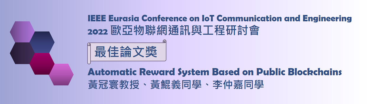 本系黃冠寰老師指導黃鯤義與李仲嘉同學榮獲 IEEE ECICE 學術會議之最佳論文獎!
